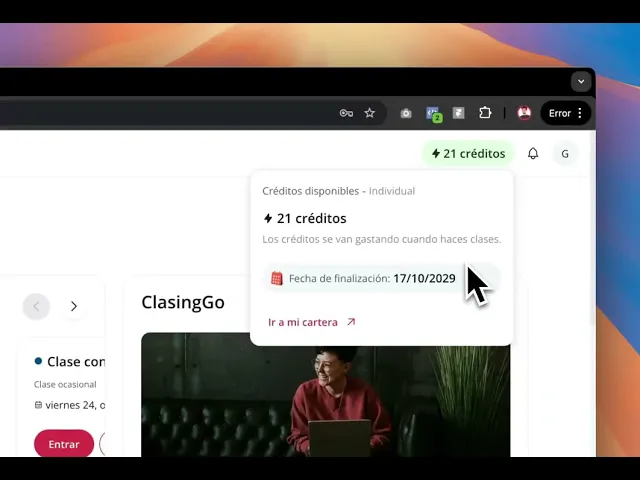 Usuario particular (b2c): Aquí podrás ver el total de créditos que te quedan por consumir. En caso de no tener créditos no podrás atender ni programar clases y deberás ir a la teinda a comprar créditos (más info aquí).